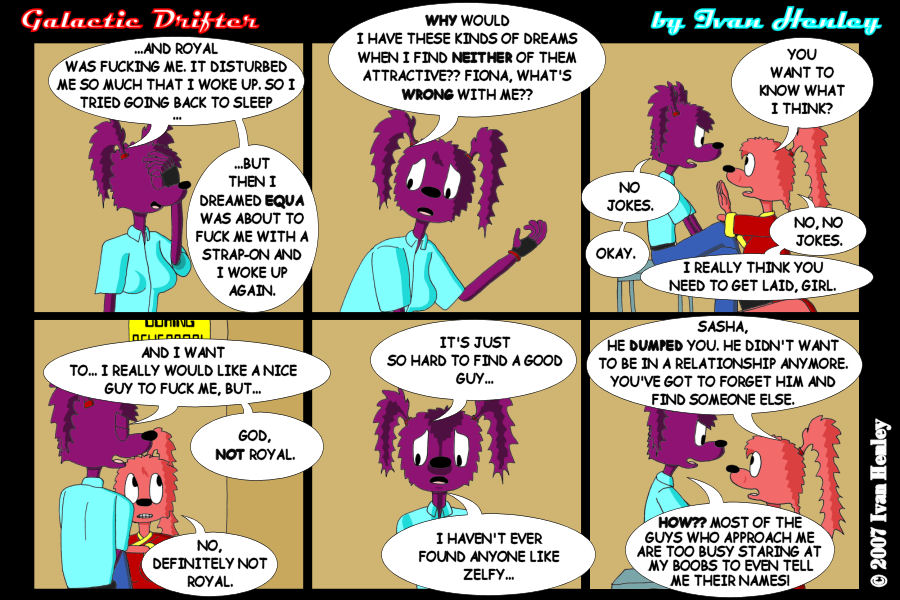 conversations for Fiona and Sasha. Is there someone for everyone? Some people say yes, some people say no. If you were to ask me, my answer would be, "I have no idea." And I really don't. But, enough about that. Next comic in five. Workin' hard to stay on schedule! |