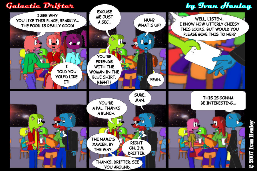 out for Sasha's safety if nothing else. Gotta make sure his friend isn't being threatened, after all. Everyone, meet Xavier! His name is pronounced "Zay-vee-yer", not "Ecks-ay-vee-er", just so you know. We may come to learn much more about him in the near future... if he plays his cards right. So, what is on the paper? Will Xavier win a date with Sasha, or will she turn him down? Does this poor guy have a chance? The story continues in five days! |