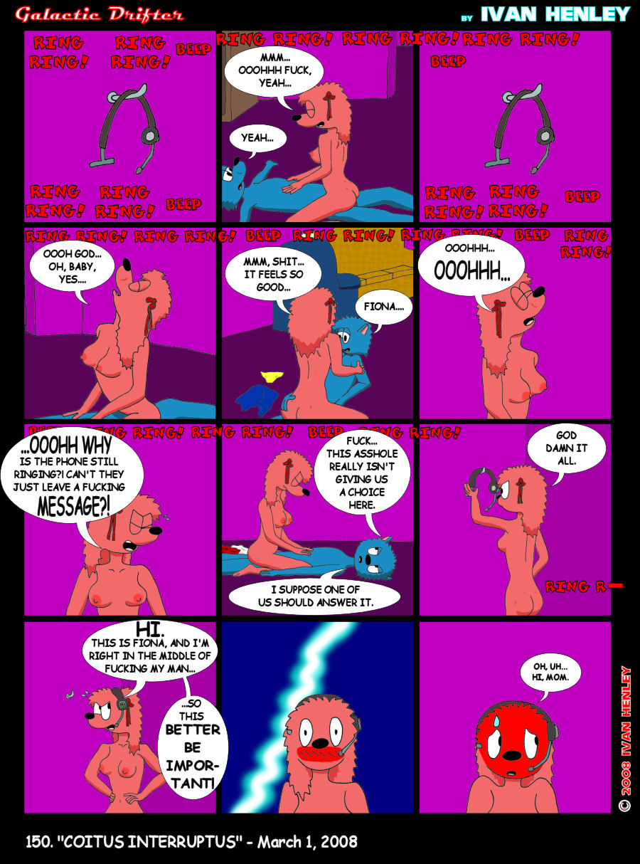 Ivan's Notes: To drastically understate the obvious: AWKWARD. You can probably guess why Fiona's mother is calling, but if you're not sure, don't worry... this story arc will focus on that. We'll see a little bit of Sasha here and there, but Drifter and Fiona will be center stage here, alongside Gwaelin and, of course, Fiona and Gwaelin's parents. And things are going to be even more awkward. Oh, yes. They will. Two years. I've been writing, drawing and posting Galactic Drifter for two years. It's hard to believe it's the two-year mark already. Where has the time gone? But anyway, happy 2nd anniversary to Galactic Drifter! Have some cake! This is also the 150th installment in the series. I'm going to be numbering them from here on out so it will be easier to keep track. Hard to believe I've already done 150 of these, not counting the extra material that popped up in the books. This is a big day! Well, that's all I have this time. Get yourself something from the shop, like one of the books! See you next week! |