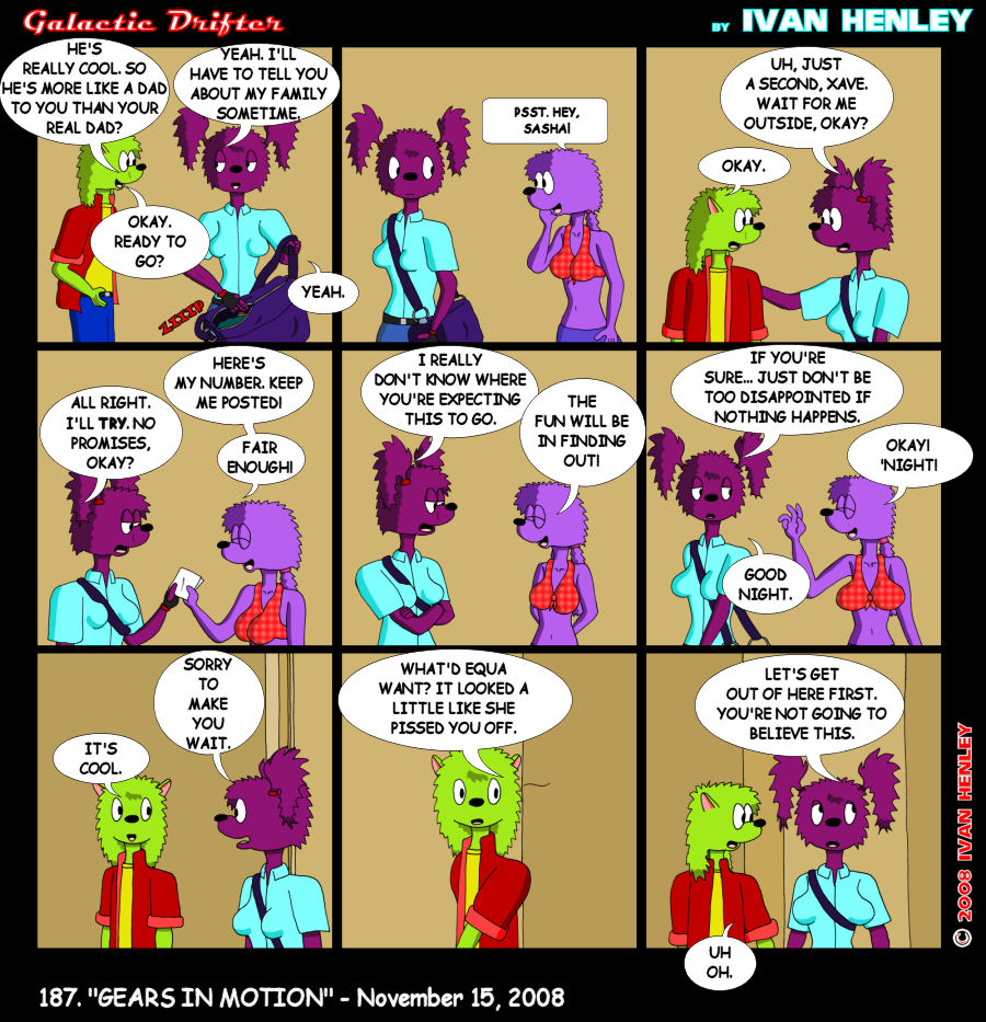 | Ivan's Notes: And now it starts. In the next installment Sasha will contact Guinevere. What will Guinevere's response be? Be sure not to miss it; it will be interesting! Well, that's all I have this time. The holidays are near, so get something from the shop for yourself or for someone else! Remember, my shop has great stuff! See you next week! |