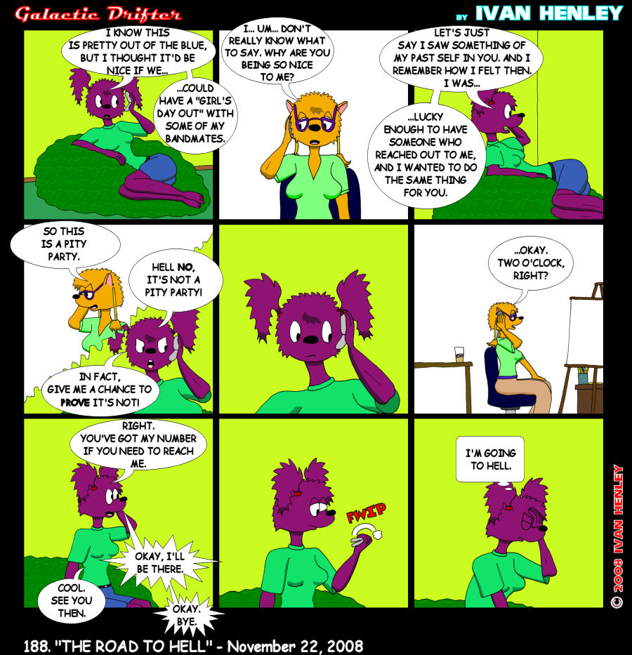 | Ivan's Notes: It looks like Equa is going to get her wish. And while Sasha certainly does want to reach out Guinevere, she clearly didn't want to do it quite like this. But we can guess that, since Sasha said "bandmates", she won't be keeping an eye on Equa all by her lonesome. Check back to see what happens! Well, that's all I have this time. The holidays are near, so get something from the shop for yourself or for someone else! Remember, my shop has great stuff! See you next week! |
